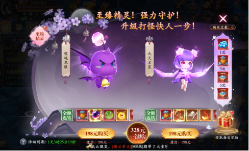 购买至臻精灵直购,购买完次数可获得50个狂欢经验丹,使用后可将等级从120级提升至161级